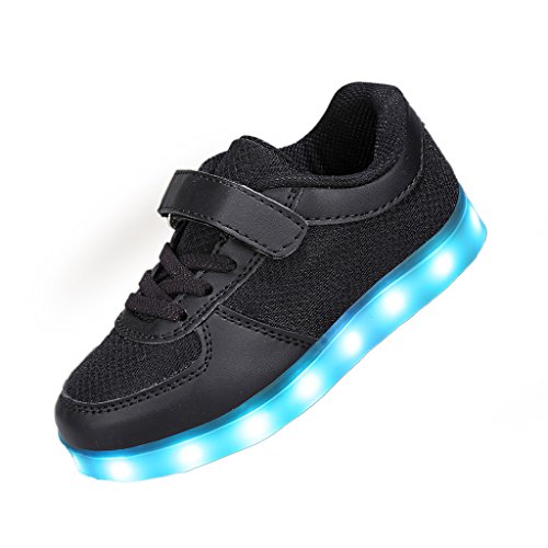 SAGUARO® Unisex Kind Jungen Mädchen USB Lade LED leuchten Sportschuhe Luminous Flashing Turnschuhe Laufen für den Sommer, Schwarz