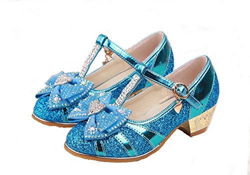 KAUFEN Süße Kleinkind -Mädchen Strass-Kleid-Prinzessin-Schuh-T-Strap Bowtie Niedrig Absätze (29 EU, Blau)