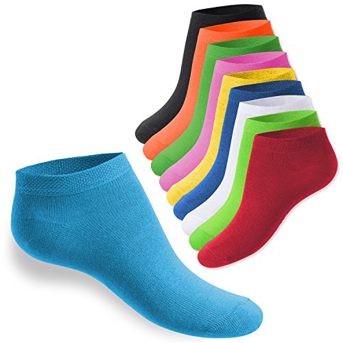 Im praktischen und günstigen 10er Sparpack.Trendy Sneaker Socken in coolen Farben für Mädchen und Jungen - für jeden Tag.